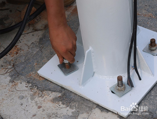 6.將燈桿法蘭盤套進(jìn)預(yù)埋件螺釘所在位置,調(diào)節(jié)好燈桿水平和角度,通過(guò)墊片和螺母進(jìn)行鎖定、7將地線同燈桿線進(jìn)行連接,球場(chǎng)整體燈光調(diào)試,安裝完畢END