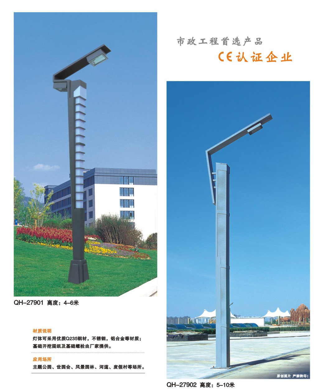 用途:景觀燈適用市政工程、園林亮化工程和公園、開發(fā)區(qū)、別墅區(qū)、廣場等戶外路燈照明工程