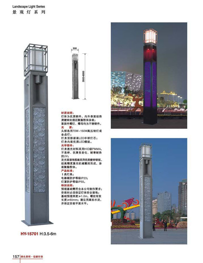 用途:景觀燈適用市政工程、園林亮化工程和公園、開發區、別墅區、廣場等戶外路燈照明工程