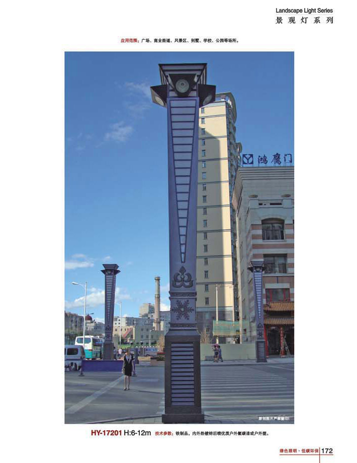 用途:景觀燈適用市政工程、園林亮化工程和公園、開發區、別墅區、廣場等戶外路燈照明工程