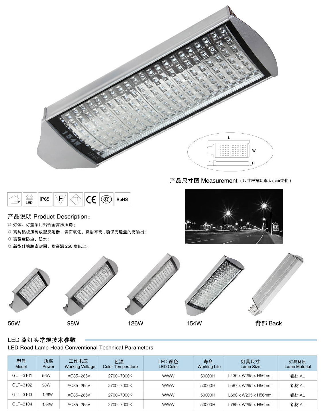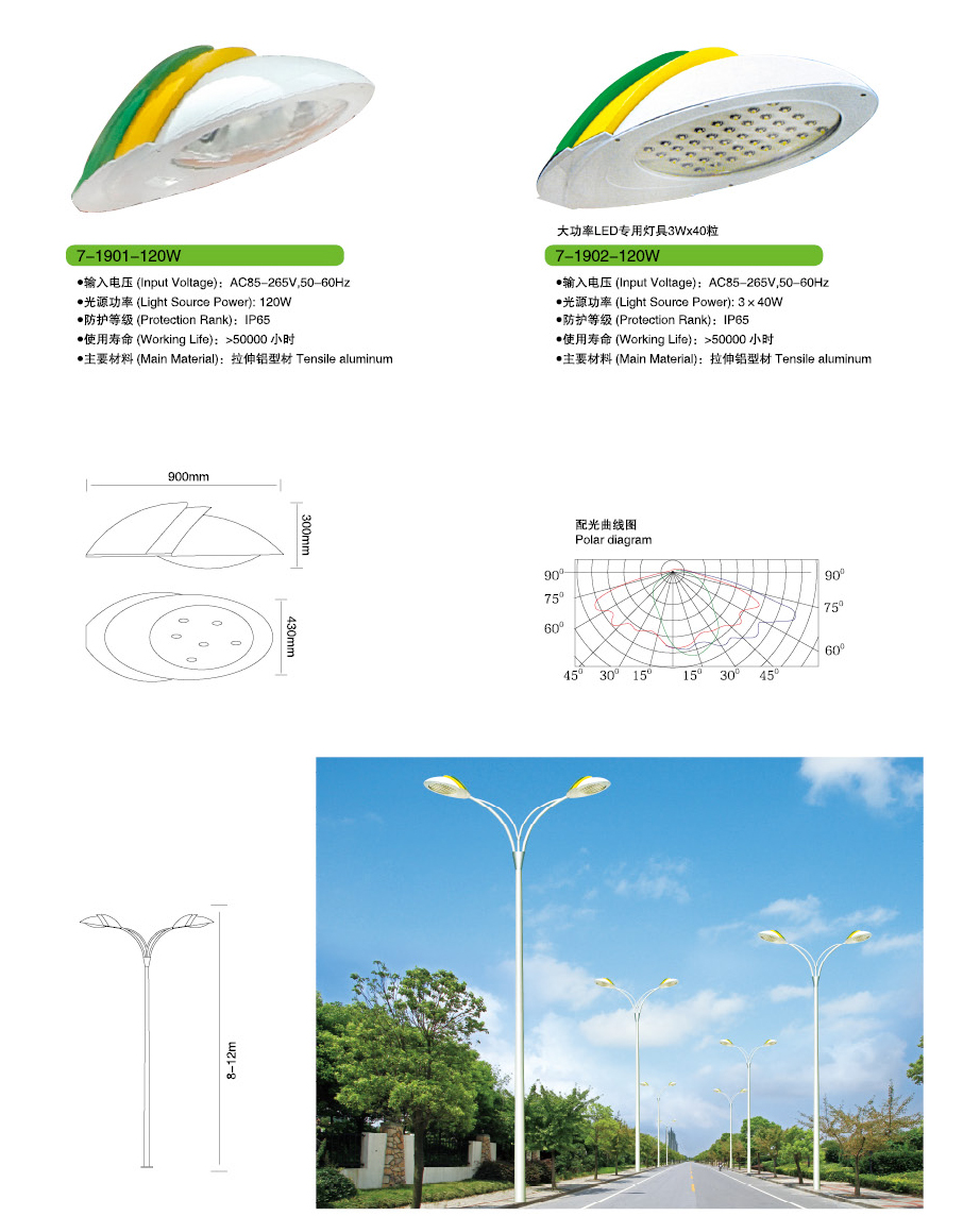 led路燈燈頭技術(shù)參數(shù):