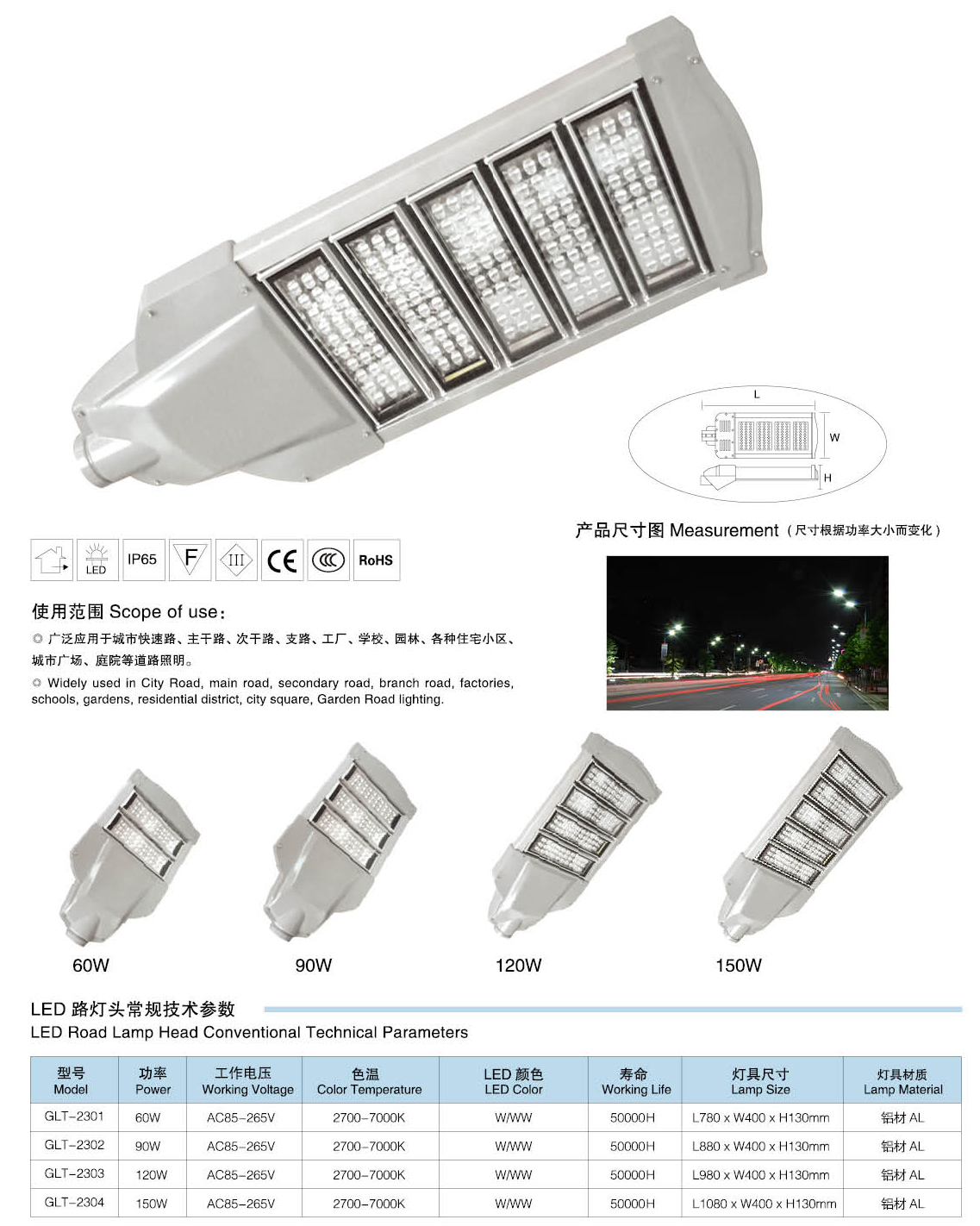 led路燈燈頭技術(shù)參數(shù):
