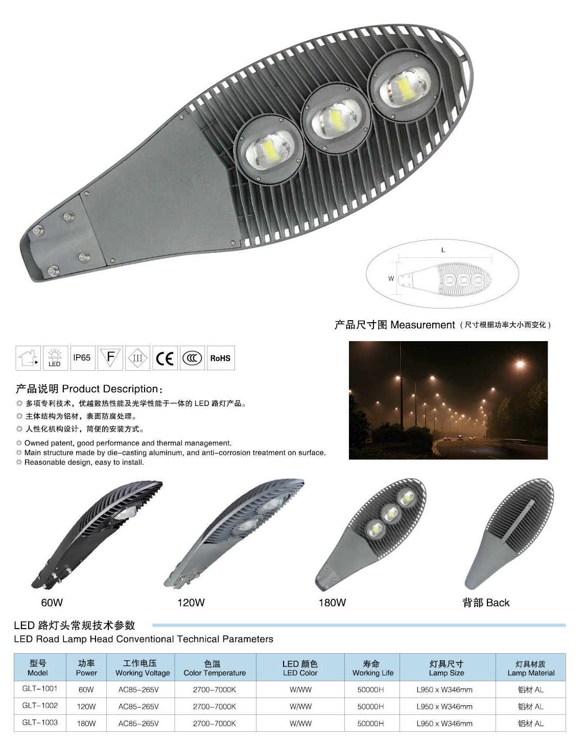 燈具參數:60W、120W、180W