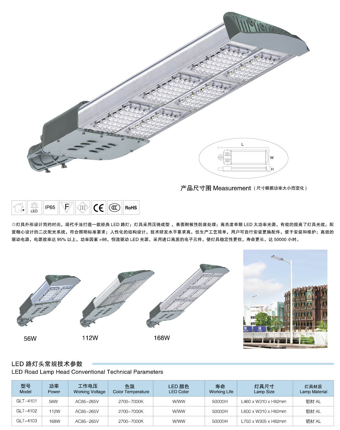 led路燈燈頭技術參數: